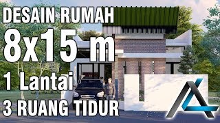 - Desain rumah#8x15 meter#1lantai#3 Ruang tidur#jasa desain#