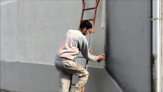 tutorial mengecat dinding kamar dengan motif geometric bahan: 1.cat warna oranye,hitam,abu-abu, 2.plester kertas 3.kuas ...