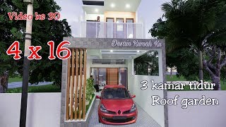 - Rumah 4 x 16 lantai 2 ada roof gardennya