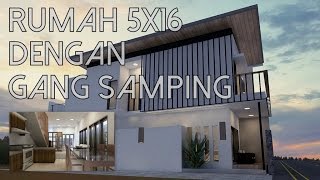 - Desain Rumah 5x16m dengan Jalan kecil samping