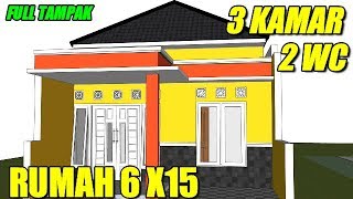- DESAIN rumah minimalis sederhana 6x15 meter 3 kamar tidur 1 lantai FULL TAMPAK DENAH