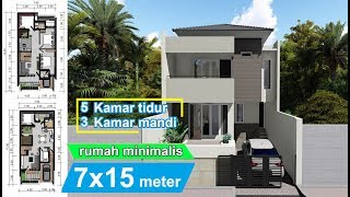 - Desain Rumah 7x15 2 lantai 5 kamar - Minimalis Perumahan - Sketchup