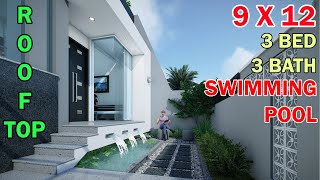 - rumah minimalis split level 1,5 lantai di lahan 9x12 meter 3 kamar 4 toilet kolam renang rooftop