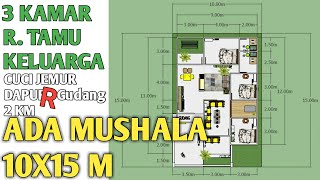 DENAH RUMAH 9X12 3 KAMAR TIDUR LAHAN 10X15 METER ADA MUSHALA, CARPORT DAN GUDANG Teras depan 3x2 Ruang Tamu 3x4 Ruang ...