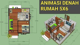 ANIMASI 3D MUDAH DIPAHAMI UNTUK YANG AWAM DENAH RUMAH UKURAN 5X6 Teras Ruang Tamu Ruang keluarga Ruang Tidur Dapur Km/Wc denah ...